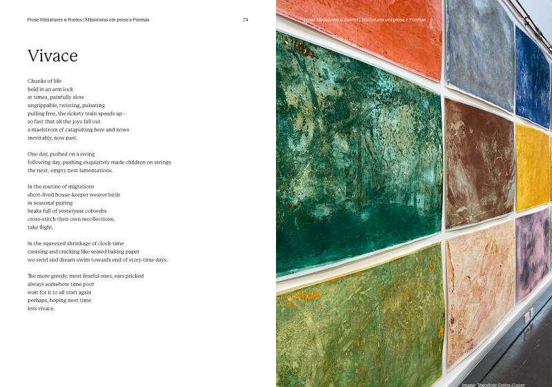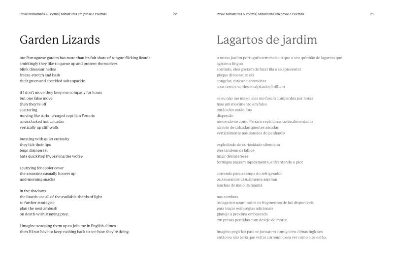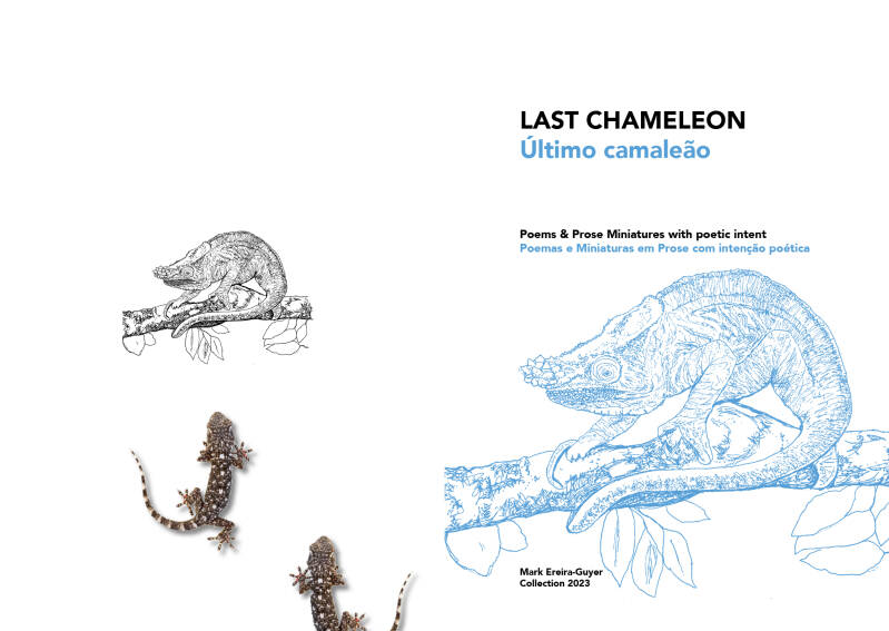 Those written in Portugal have been translated into Portuguese (to the best of my language abilities). Here are some examples below, and you can click on the fuller links for both 'The Last Chameleon' and 'Mark-Making'. My first collection was 'Look to the Birds' - Everyone trying to get back into 'The Garden'